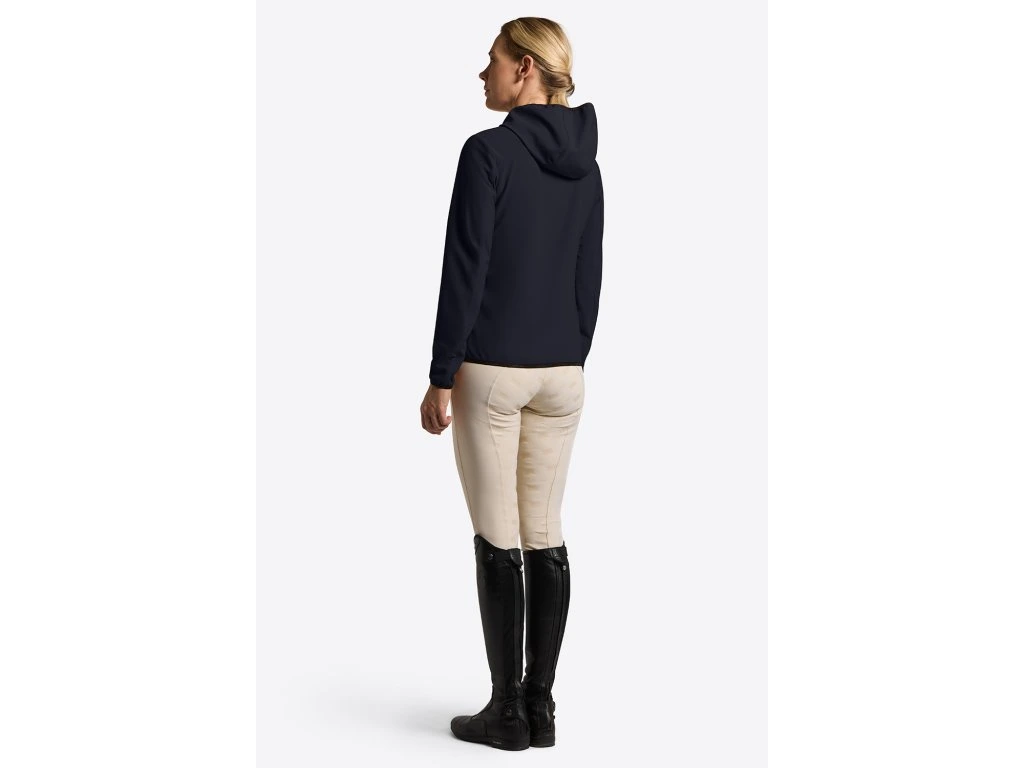 Bunda je vyrobená z pružného technického softshellu, ktorý sa dokonale prispôsobí pohybu jazdkyne a zároveň poskytuje ochranu pred nepriaznivými vplyvmi počasia. Integrovaná kapucňa a praktické zapínanie na zips zvyšujú komfort a všestrannosť pri používaní.