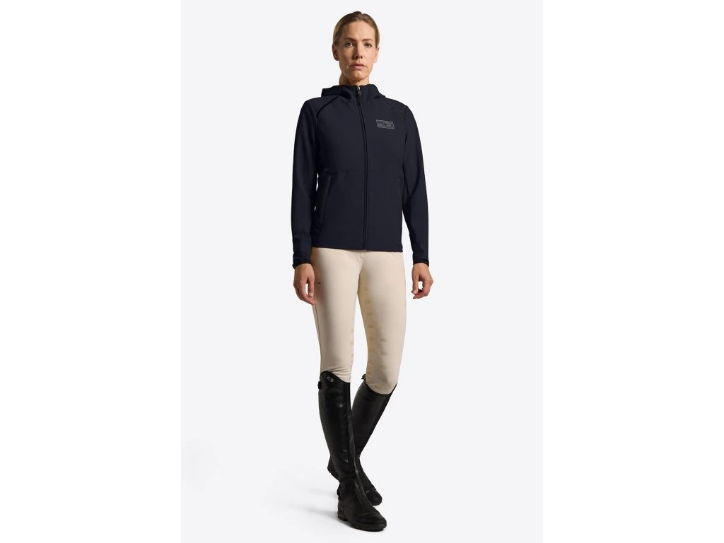 Dámska softshellová jazdecká bunda Rider's Gene. Priedušná, elastická a rýchloschnúca bunda s kapucňou pre maximálny komfort pri jazdení.