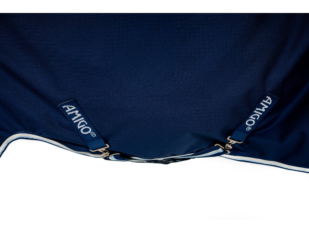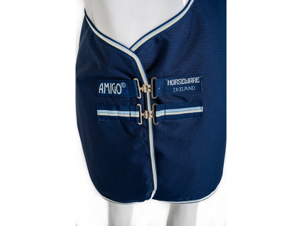 Výbehová deka Ripstop 900D Plus Amigo 200 g má odnímateľný krčný diel a nechýbajú ani pracky na prichytenie poddeky. Vďaka tomu môžete ľahko zvýšiť hrejivosť deky počas mrazivých dní. Rovné zapínanie vpredu a oblúky na nohách zvyšujú pohodlie koňa a poskytujú mu väčšiu voľnosť pohybu. Nechýba antistatická a antibakteriálna podšívka, dva krížové popruhy a chvostový popruh. Vynikajúci komfort, univerzálnosť a kvalita, vďaka ktorej zostane váš kôň v suchu a teple.