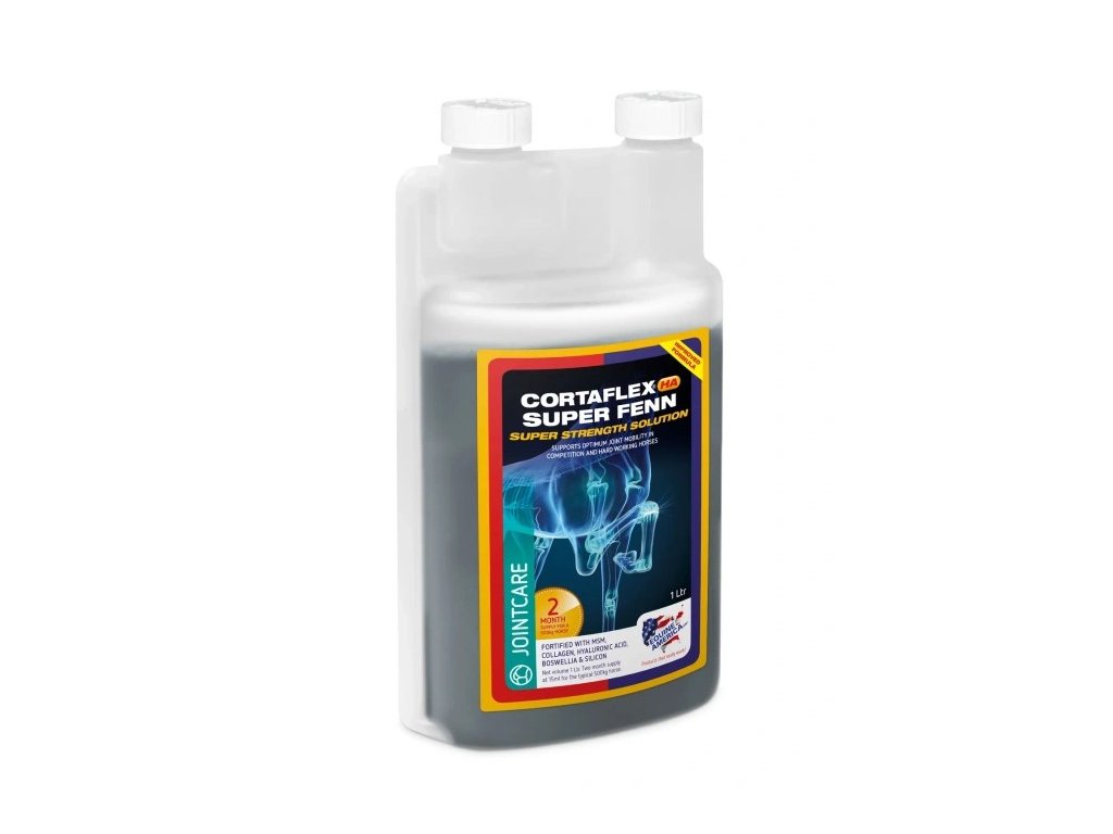 Cortaflex HA Super Fenn v tekutej forme so zvýšeným účinkom dodá vášmu koni základné látky v špičkovej zmesi na podporu zdravia kĺbov. Poskytuje účinnú podporu pohybového aparátu pre výkonnostné, dostihové, súťažné alebo staršie kone. Revitalizuje kĺby prostredníctvom jedinečnej kombinácie kolagénu, aminokyselín, kyseliny hyalurónovej, boswellie a stopových prvkov. Tie poskytujú dôležité nutričné stavebné kamene na podporu zdravia kĺbov.