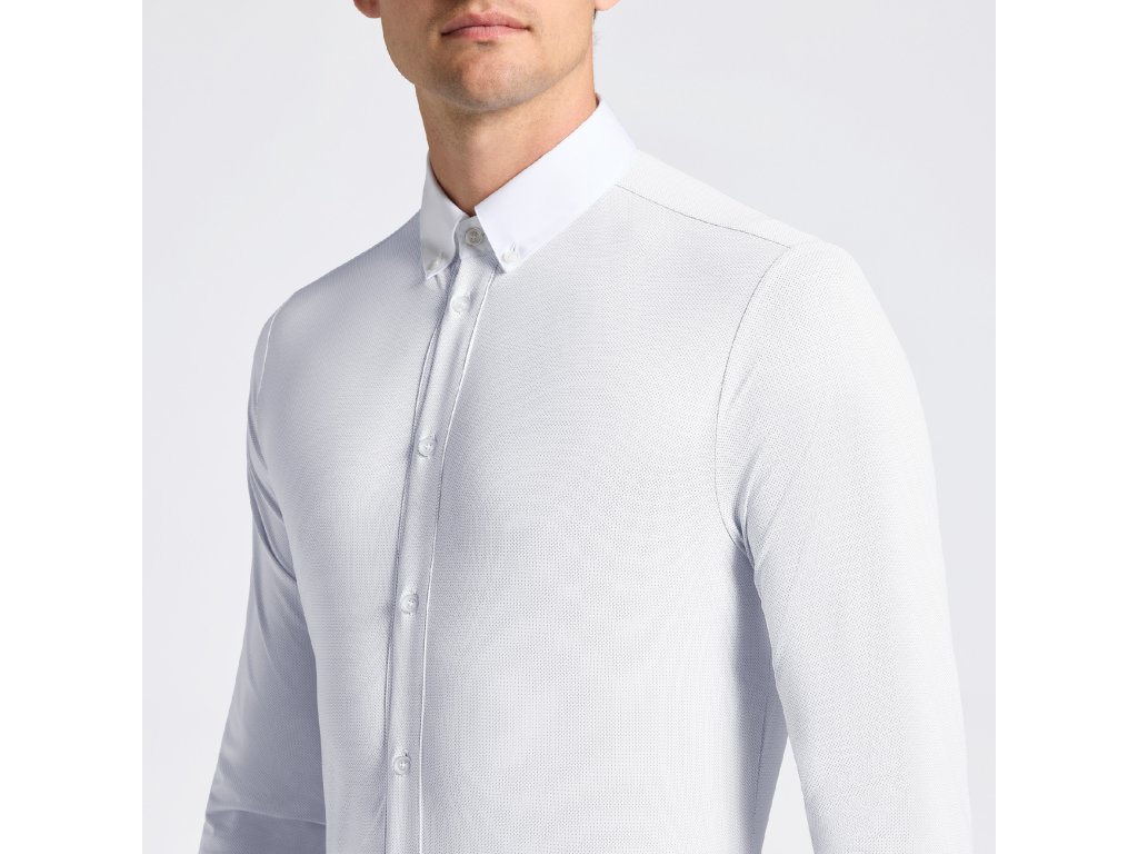 Elegantná a priedušná jazdecká košeľa pánska Cavalleria Toscana, vyrobená z oxfordskej tkaniny. S gombíkmi vpredu po celej dĺžke a vyšitým logom CT. Ideálna na tréning a súťaže.