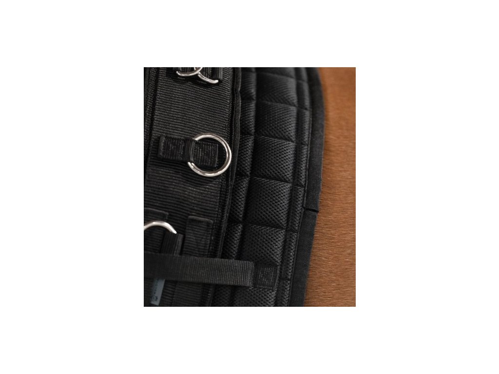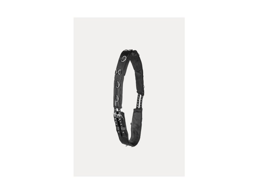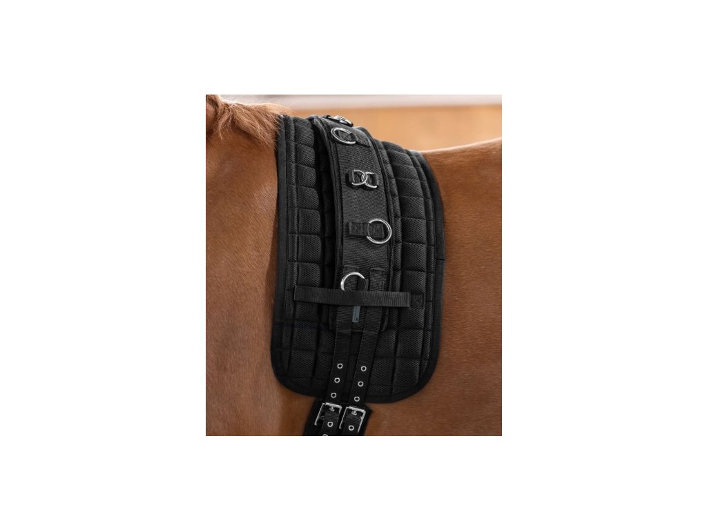 Pohodlný a nastaviteľný lonžovací obrušník. S 12 kovovými krúžkami na individuálne lonžovanie.