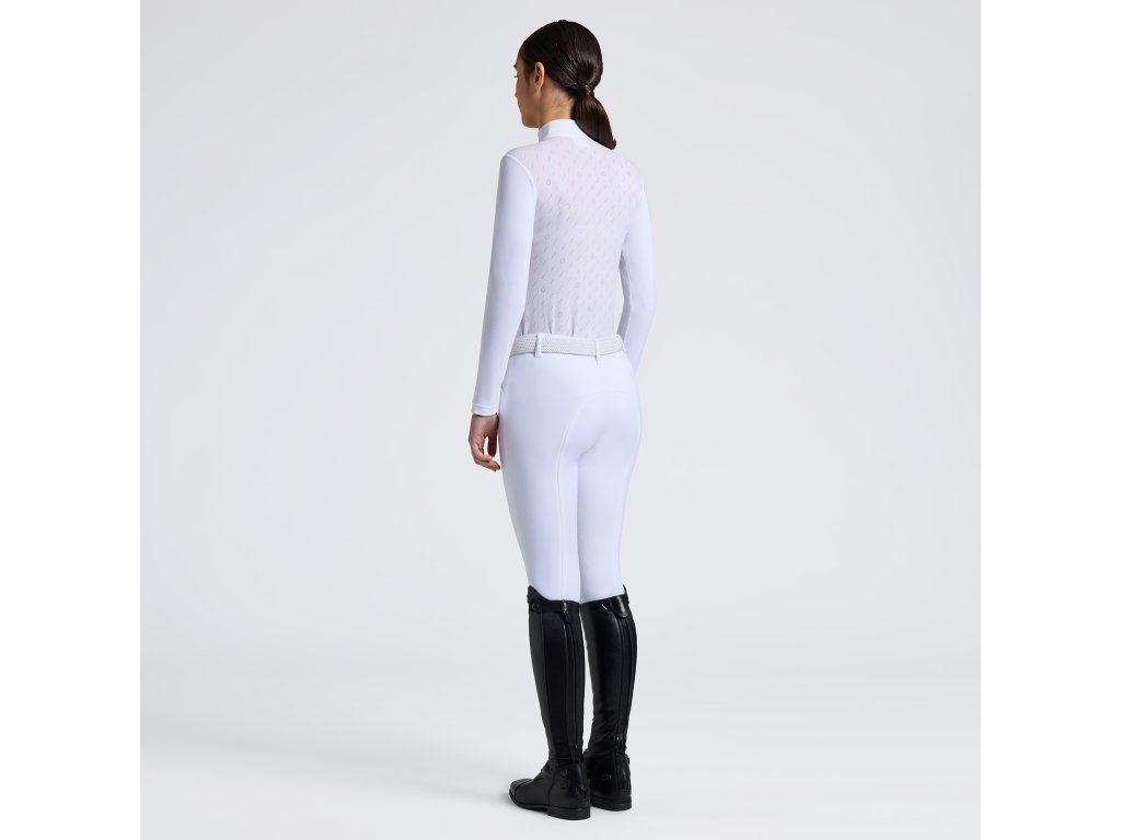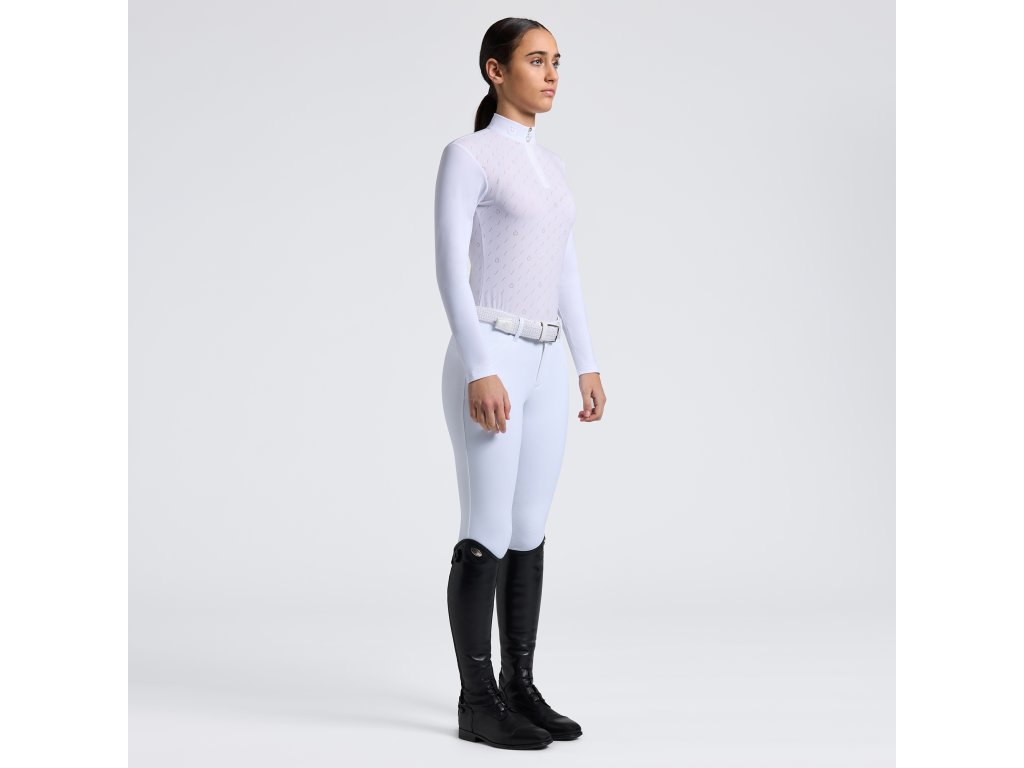Jazdecká košeľa detská FW25 cavalleria Toscana s dlhým rukávom a žakárovým vzorom. Je navrhnuté tak, aby počas súťaží poskytovalo špičkový výkon a zároveň elegantný vzhľad. Technický džersej, z ktorého je vyrobená, zaisťuje priedušnosť, pružnosť a dokonalé pohodlie pre voľný pohyb počas jazdy.