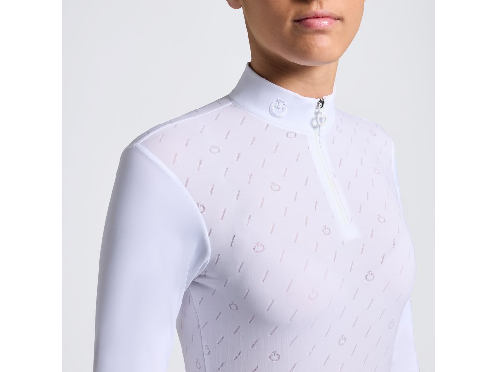 Detská jazdecká košeľa Cavalleria Toscana z kvalitného džerseja. Celoplošný elegantný vzor. Zips vpredu pre jednoduché obliekanie. Pohodlie, elegancia a funkčnosť pre mladé jazdkyne.