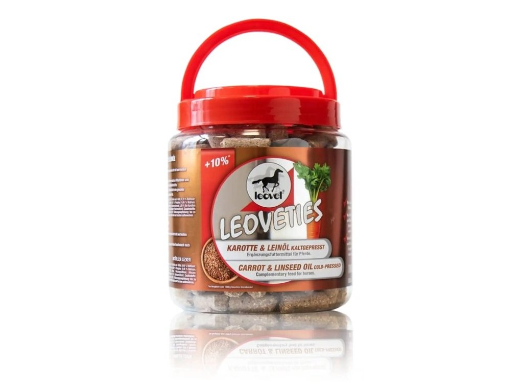 Doprajte svojmu koňovi pochúťku, ktorá nielen poteší, ale aj prospeje jeho zdraviu. LEOVETIES s mrkvou a ľanovým olejom sú starostlivo spracované pochúťky pri nízkej teplote, aby sa zachovalo maximum živín. Obsahujú kvalitné prírodné zložky, ktoré podporujú trávenie a vitalitu.