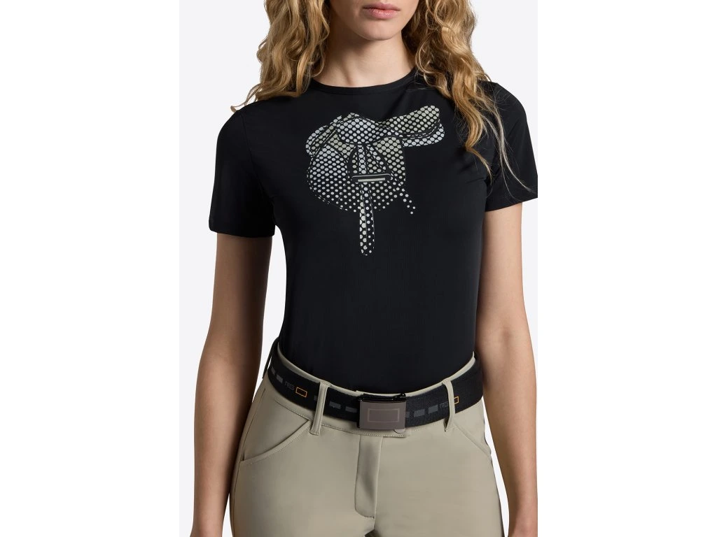 Ideálna voľba pre jazdkyne, ktoré hľadajú funkčné jazdecké tričko s moderným dizajnom a detailmi inšpirovanými jazdeckým svetom.