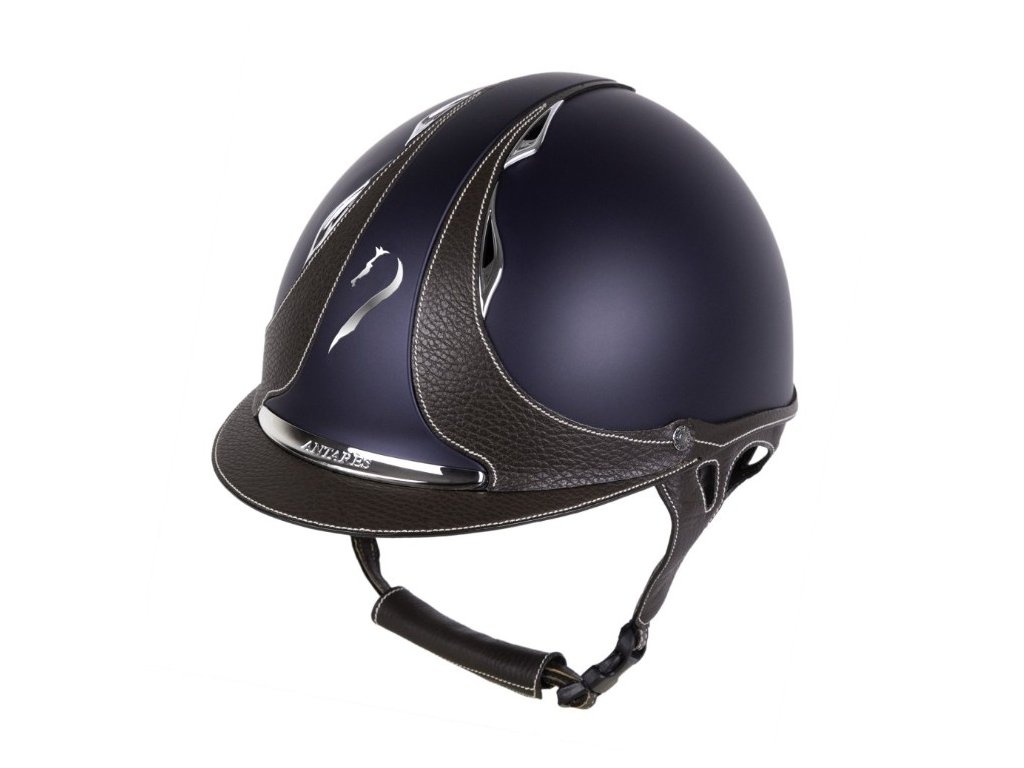 Ľahká, pohodlná a štýlová - jazdecká prilba Galaxy blue and brown Antarés v sebe spája eleganciu a funkčnosť. Maximálne vetranie udržuje prúdenie vzduchu (4 vetracie otvory vpredu a 2 vzadu). Vnútorné vložky sú vyberateľné a prateľné.