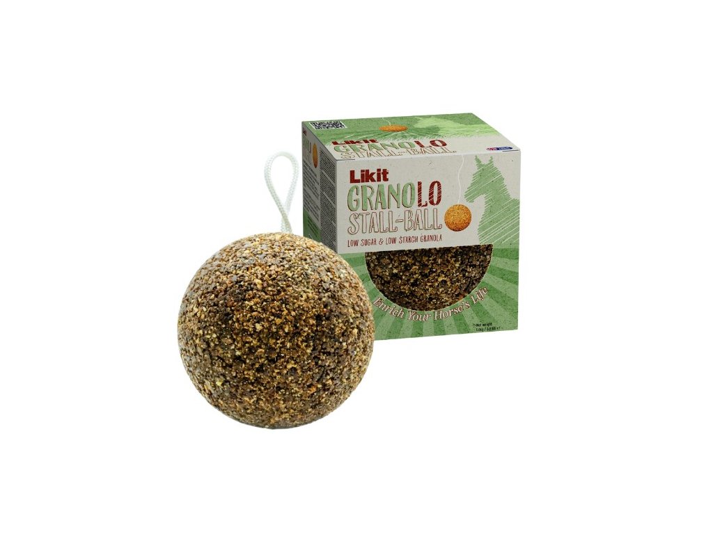 Cereálna guľa s minimom cukru Likit GranoLo je vyvinutá tak, aby bola vhodná pre kone so špecifickými diétnymi potrebami. Obsahuje len 3 % cukru a nízke množstvo škrobu (3,5 %). Likit GranoLo preto predstavuje skvelý spôsob, ako zabaviť kone na pastvine aj v stajni. Lahodná jablková príchuť chutí každému a je dôkazom, že ani diéty nemusia byť nudné.